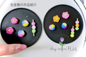 と一緒にクレイで作る練り切り2種(花火・ダリア)を作成いただきました。