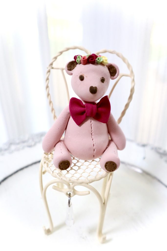 花冠もリボンも、すべてクレイで丁寧に手作りしました。