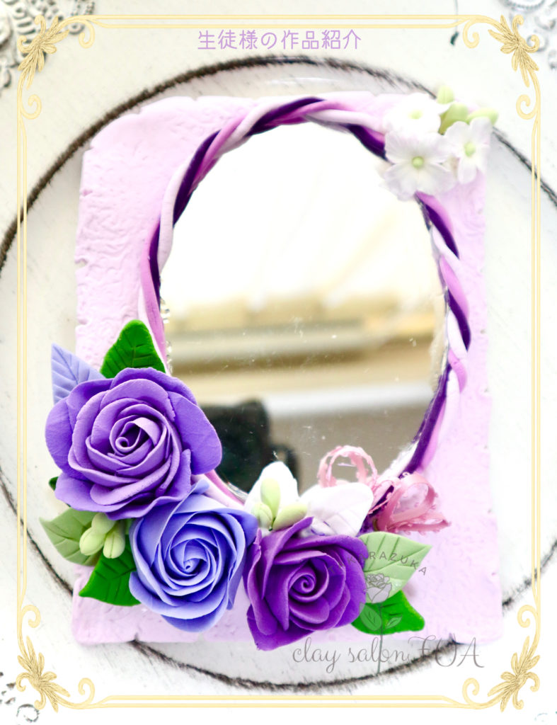 CLAY salon FUA宝塚にて、フラワーコースをスタートされた生徒様が、**初めてのクレイ作品「鏡のアレンジ」**を完成されました✨